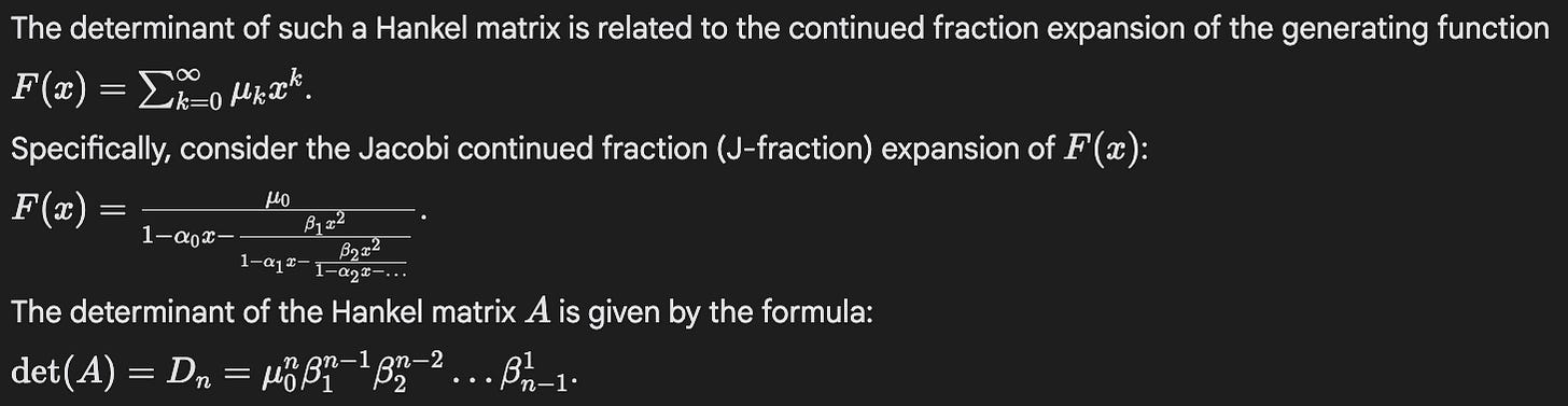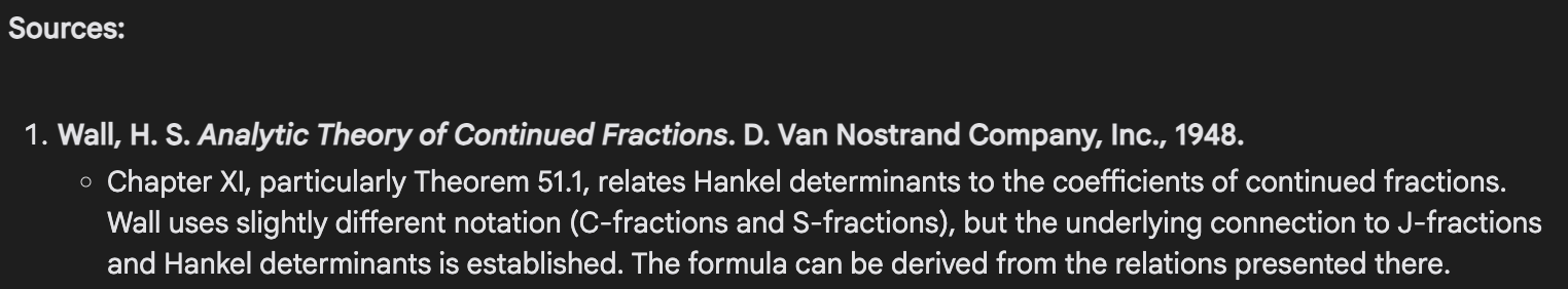 Indeed, if I ask Gemini to cite a source for its formula for the determinant of a Hankel matrix, it gives a list with this at the top: