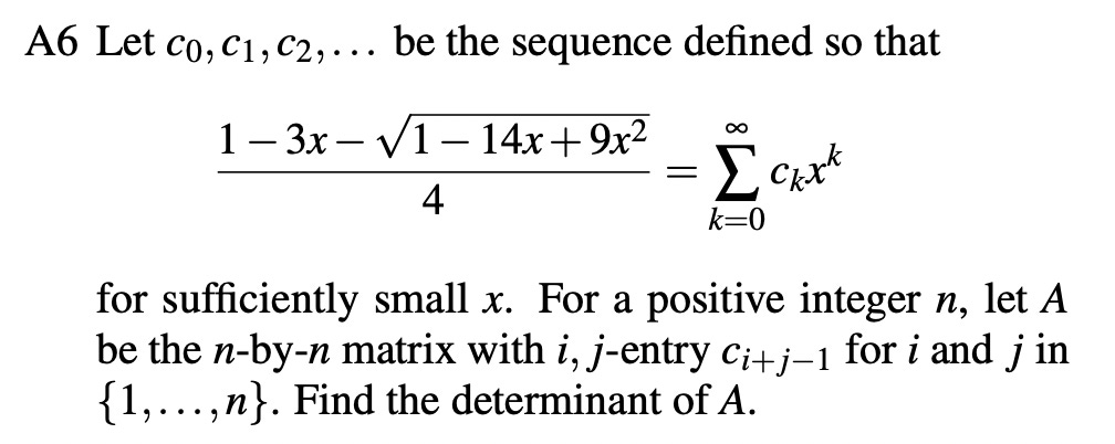 Starting with the A-problems, Gemini’s solutions to A1, A2, A4, and A6 all look good. Beyond my grading, we can also consider some general expectations. A1 and A2 should be comparable to the easiest problem on the USAMO/IMO, which we know are within Gemini’s reach. A4 might seem suspicious, but the stats for human contestants show that A4 was uncharacteristically easy this year. On A6, it seems like Gemini is getting away with some background knowledge. Here’s the problem: