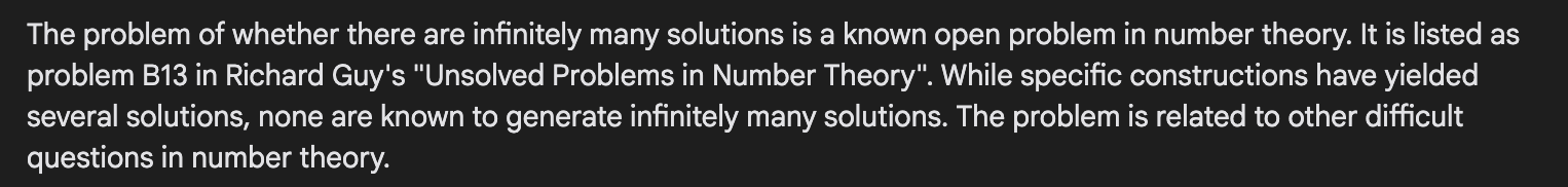 At this point, we’ve got to try it out on some unsolved problems. I randomly sampled 6 problems from this site, which is a catalog of (as of this writing) 944 problems posed by hyper-prolific mathematician Paul Erdős and categorized by whether they have been solved or remain open. These problems are all probably too well-trodden for Gemini to have any chance at even a single one, but it’s a fine way to test our methodology.