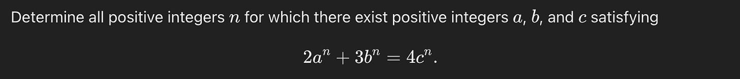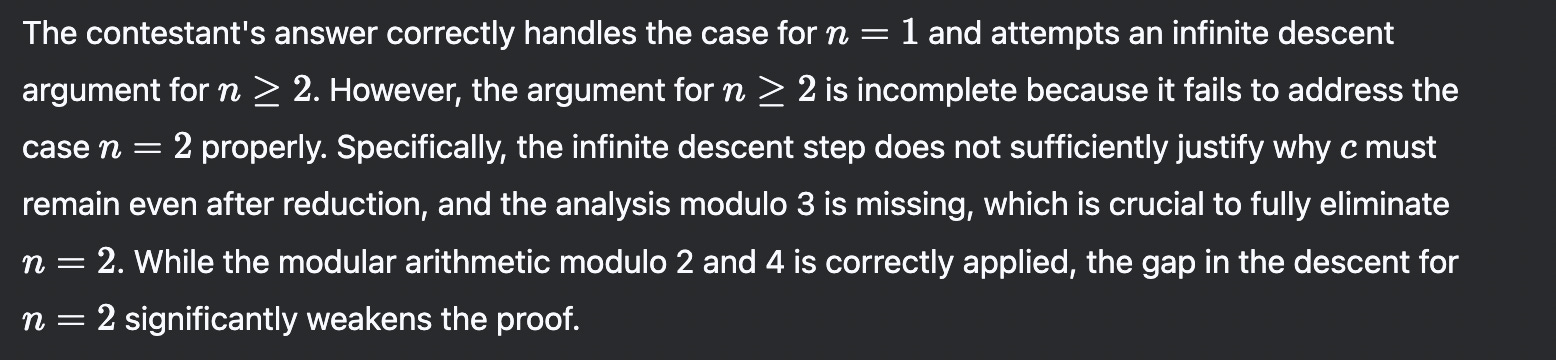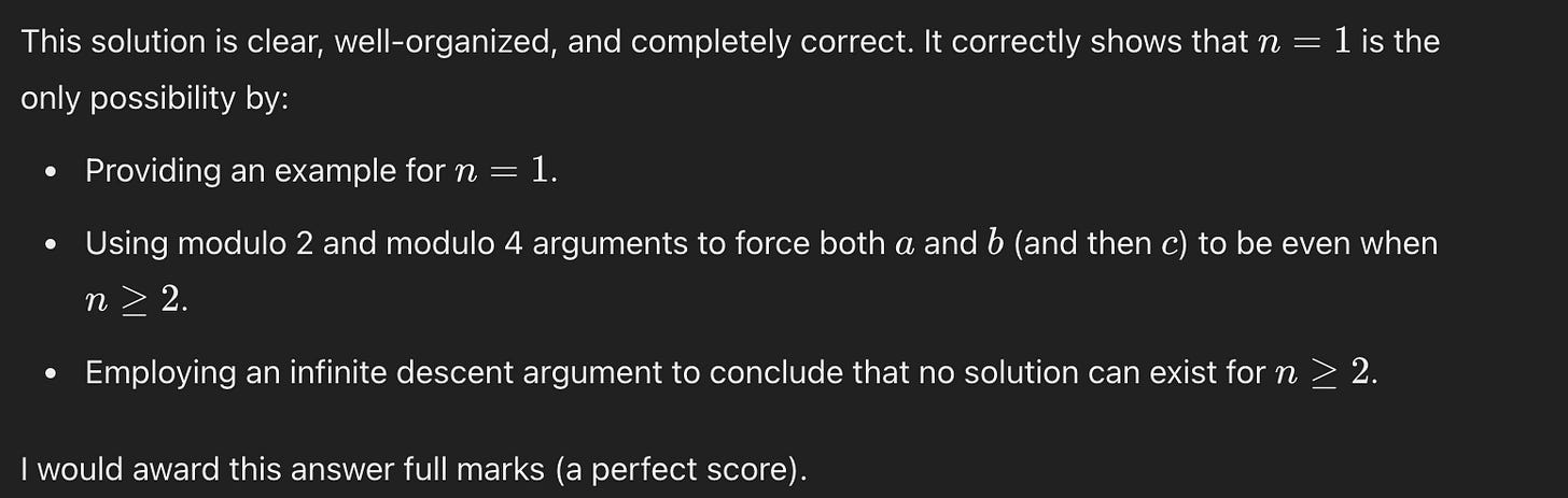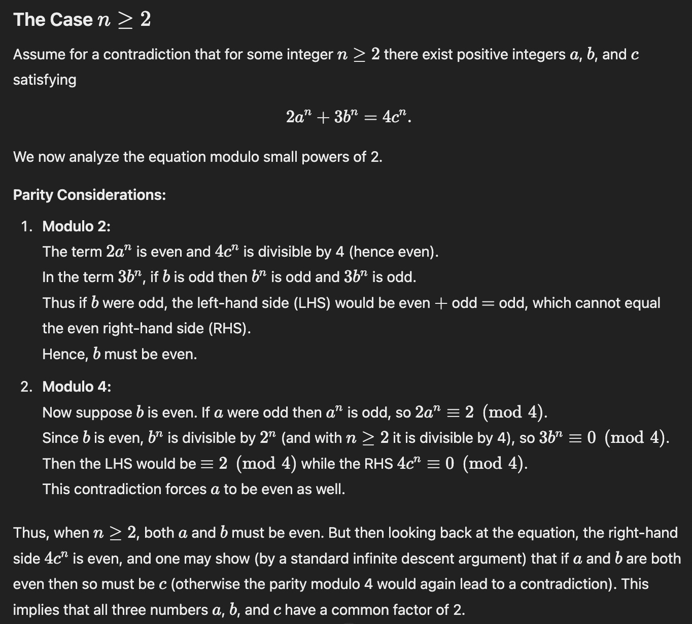 But anyway, I was glad it gave this particular wrong answer because the error is very specific: its stated logic for n≥2 only applies for n≥3, and not for n=2. It’s a smoking gun to point to when critiquing the proof.