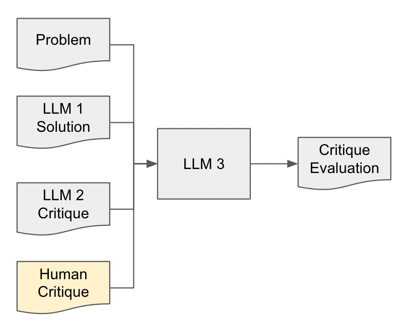 But then, could we add a third LLM, give it the target critique, and have it evaluate the second LLM’s critique against this?